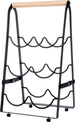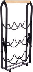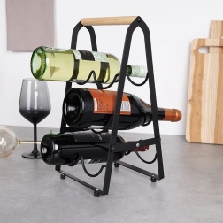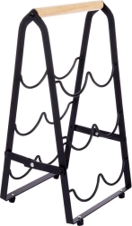 Elegantno in stabilno stojalo za vino za do 6 steklenic v moderni črni barvi z lesenim ročajem. Zaradi horizontalnega shranjevanja steklenic ohranja plutovine vlažne in zagotavlja pravilno zorenje vina. Trdna kovinska konstrukcija, protidrseče nogice in kompaktne mere 21 × 17 × 38 cm ga naredijo za praktičen dodatek v kuhinji, jedilnici ali domačem baru. Zložljiv dizajn olajša prenašanje in shranjevanje.