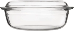 Komplet sestavljata dva steklena dela: globlja posoda in zgornji del, ki deluje kot pokrov ali samostojen pekač. Vgrajeni ročaji olajšajo rokovanje, pokrov pomaga ohranjati vlago in sočnost jedi. Gladka površina se enostavno čisti in je primerna za pomivalni stroj.