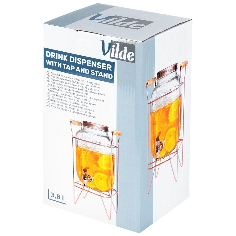 Širok vrat omogoča enostavno vstavljanje rezin citrusov, zelišč in kock ledu. Zaradi prozornega stekla imate vedno pregled nad vsebino in količino. Dozirnik ni primeren za vroče pijače, namenjen je postrežbi hladnih in ohlajenih napitkov. Originalen izdelek znamke VILDE, izdelan v skladu z evropskimi standardi.