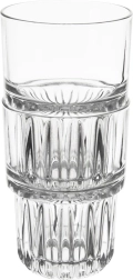 Praktičen kozarec s prostornino 320 ml iz kakovostnega, debelega stekla z zoženim dnom in navpičnim rebrastim vzorcem za zanesljiv oprijem. Je prozoren za elegantno serviranje vode, limonad, sokov in ledenih čajev, primeren za pomivalni stroj in mikrovalovno pečico.