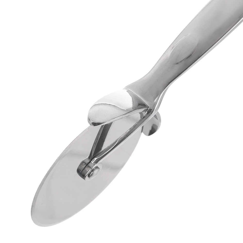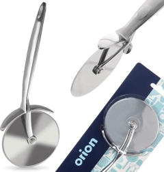 Praktičen kovinski rezalnik za pico z vrtljivim kolescem premera 7,5 cm zagotavlja hitro in natančno rezanje. Ergonomski ročaj z odprtino za obešanje, v celoti kovinska izvedba za dolgo življenjsko dobo in enostavno čiščenje v pomivalnem stroju.