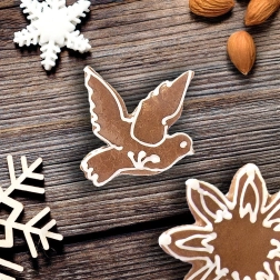 Ustvarite privlačne piškote in medenjake v obliki golobice – simbola miru in poročne elegance. Kalup iz kakovostnega nerjavnega jekla zlahka oblikuje testo, fondant in marcipan ter ohranja natančno obliko zahvaljujoč trdnim, gladkim robovom.