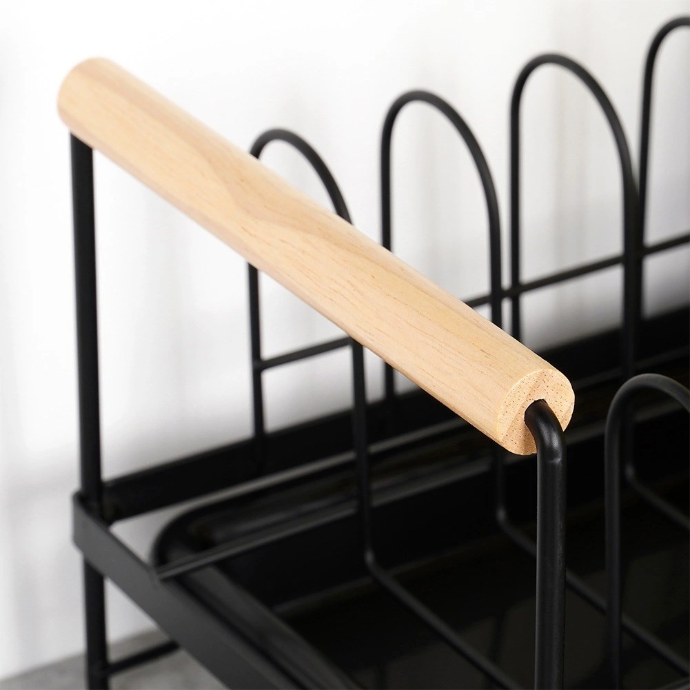 Masiven kovinski okvir v mat črni barvi zagotavlja stabilnost in dolgo življenjsko dobo, medtem ko odstranljiva odcejevalna posoda olajša čiščenje in ohranja kuhinjske površine suhe. Bambusovi ročaji olajšajo rokovanje in izdelku dodajo naravni poudarek.