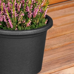 Črna površina poudari barve rastlin in zagotavlja vsestransko uporabo pri vhodnih vratih, na terasi, balkonu in vrtu. Material je 90 % recikliran, lonček pa je v celoti reciklabilen, zato je ekološka izbira. Preprosto vzdrževanje – umazanijo enostavno sperete z vodo.