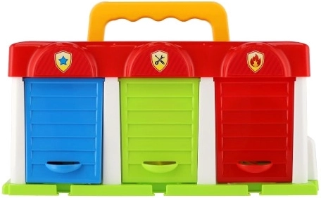 Ta barvita plastična garaža je idealna za vsakega majhnega ljubitelja avtomobilov. Ponuja shranjevalni prostor za tri avtomobile, ki so del seta: gasilski avto, osebni avto in kombi. Vsak avto ima svoj lasten vstop v garažo, kar zagotavlja enostaven vstop in izstop. Garaža podpira domišljijsko igro in razvija motorične sposobnosti otrok.