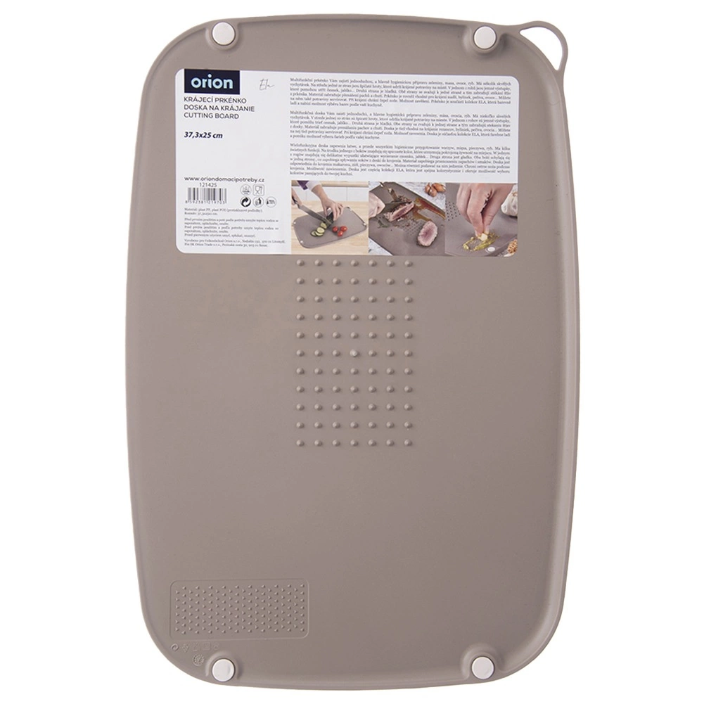 Posebna profilacija omogoča odvajanje sokov v eno smer, kar zmanjšuje nered na pultu. Trpežna, za živila varna plastika v bež barvi je enostavna za čiščenje in primerna za pomivanje v pomivalnem stroju (odpornost do +95 °C). Zahvaljujoč luknji za obešanje desko zlahka shranite in je vedno pri roki.