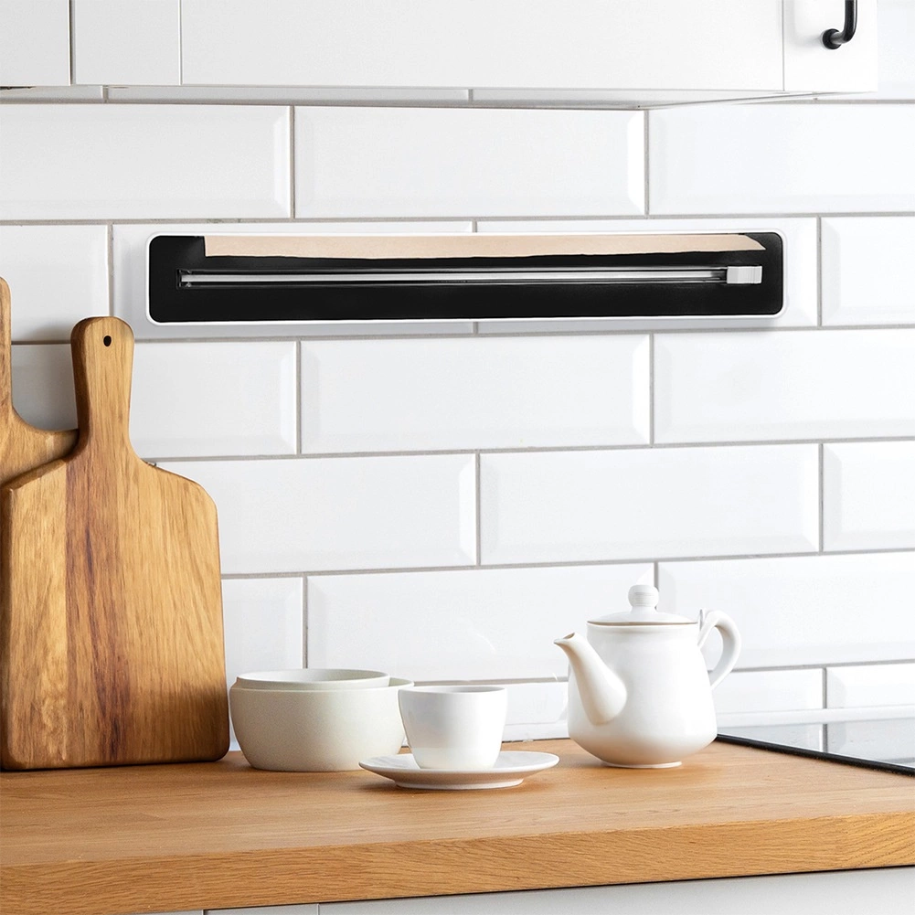 Ohranite kuhinjo urejeno in delo hitro. Dozirnik za folije v elegantni črno-beli izvedbi varno shrani rolo in z natančnim rezilom zlahka loči želeno dolžino. Lahka in trpežna konstrukcija se preprosto čisti in je pripravljena na vsakodnevno uporabo.