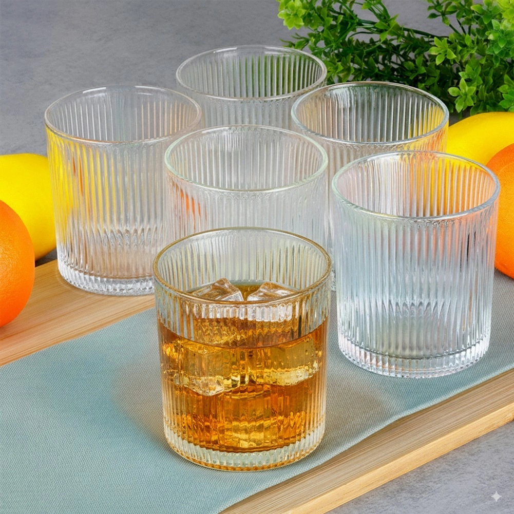 Elegantni set šestih kozarcev s prostornino 310 ml iz kakovostnega rebrastega stekla. Zahvaljujoč debelemu dnu, navpičnemu rebranju in univerzalni obliki so idealni za vodo, limonade, koktajle in whisky. Enostavno vzdrževanje – primerno za pomivalni stroj in popolno za vsakodnevno uporabo doma in v gastronomiji.