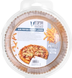 Papirnati vložki za cvrtnik na vroč zrak VILDE prihranijo čas pri čiščenju in podaljšajo življenjsko dobo koša cvrtnika. Preprečujejo neposreden stik živil s površino koša, s čimer zmanjšajo prijemanje in olajšajo odstranjevanje hrane. Izdelani so iz kakovostnega, oljnatega papirja, odobrenega za stik z živili, ki je trden, odporen na maščobo in vodo ter ne prenaša vonjev ali okusov.