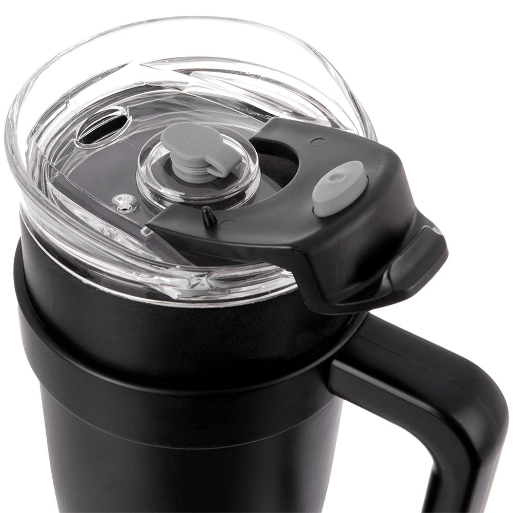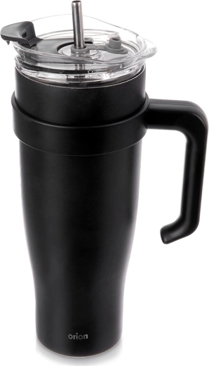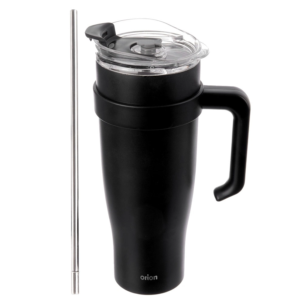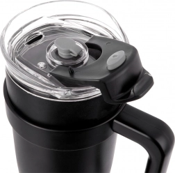 Prozoren pokrov z kakovostnim tesnjenjem ima zapiralno odprtino za pitje in ločeno odprtino za kovinsko slamico s silikonskim zapiralom. Ergonomski ročaj za udoben oprijem olajša prenašanje in pitje na poti. Za najboljši učinek napolnite približno do 90 % in pred uporabo vrč splaknite z vročo ali hladno vodo.