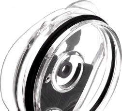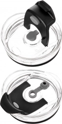 Prozoren pokrov ima zapiralno odprtino za pitje in ločeno odprtino za kovinsko slamico s silikonskim čepom. Zmanjšuje razlitje in povečuje udobje pri pitju.