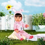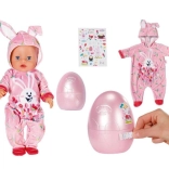 Velikonočno jajce BABY born je popolno presenečenje za vse male ljubitelje punčk. V rožnatem jajcu se skriva prisrčen pajac z motivom zajčka Benna in spomladanskih tulipanov. Kapuca ima vesela zajčja ušeska, ki oblačilu dodajo igriv videz.