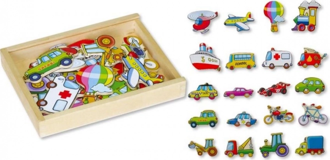 Leseni magnetki z motivi prevoznih sredstev vam prinašajo zabavo in izobraževanje v enem. Komplet vsebuje 20 magnetkov v praktični škatlici, idealno za otroke.