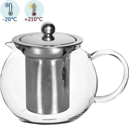 Praktična steklena čajnica z nerjavečim infuzorjem za udobno namakanje razsutih čajev in zeliščnih napitkov. Izdelana iz odpornega borosilikatnega stekla, ki prenese temperature od -20 °C do +210 °C. Odstranljivo cedilo omogoča enostavno čiščenje in uporabo kot klasični vrč. Ergonomski ročaj, natančen izlivalni vrat in možnost pomivanja v pomivalnem stroju zagotavljajo udobno vsakodnevno uporabo.