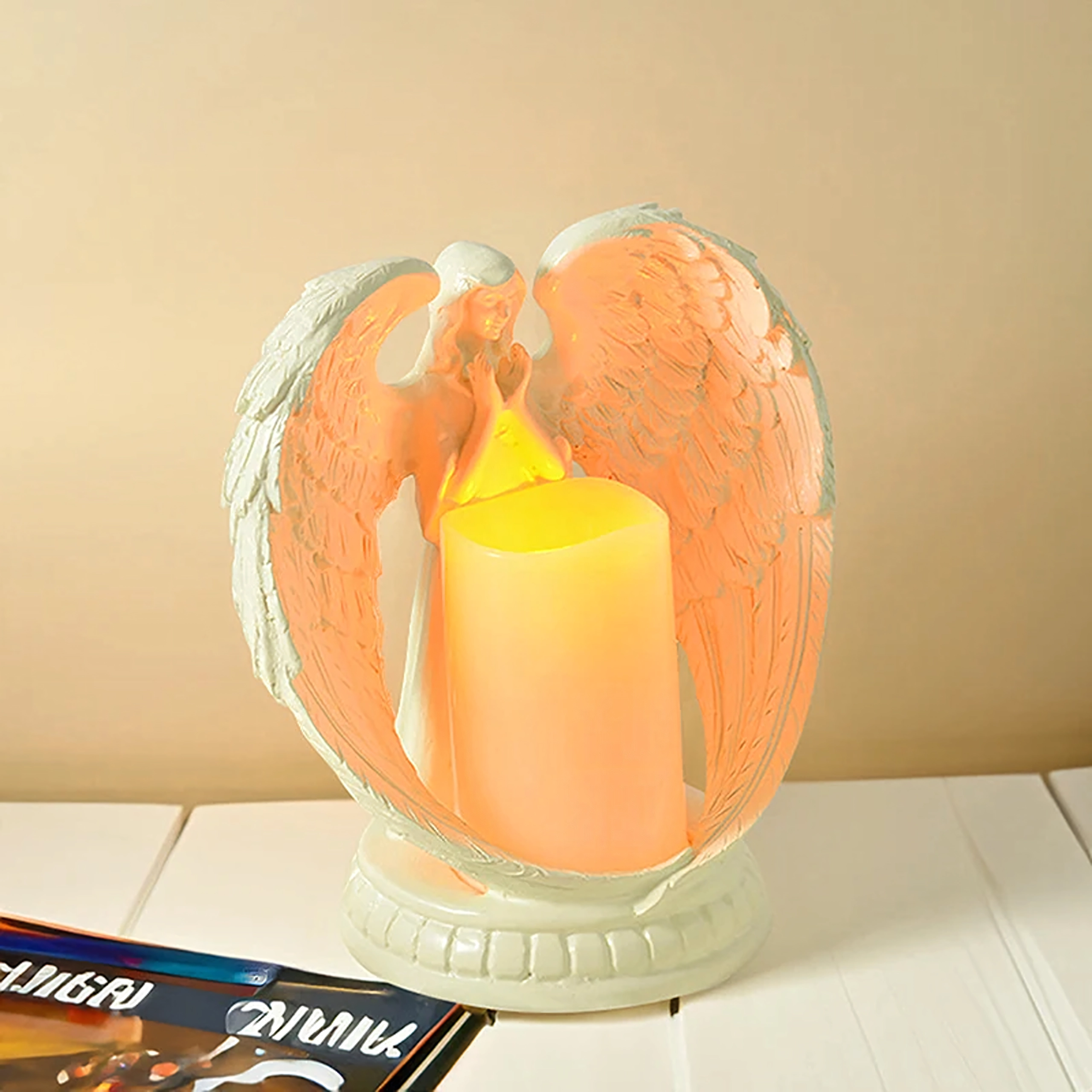 Elegantni angel z LED svetlobo v roki prinaša prijetne in realistične svetlobne učinke. Figurka iz mavca simbolizira mir, spomin in blagoslov. Idealno kot notranja dekoracija, za verske obrede, na grob in kot posebno darilo.