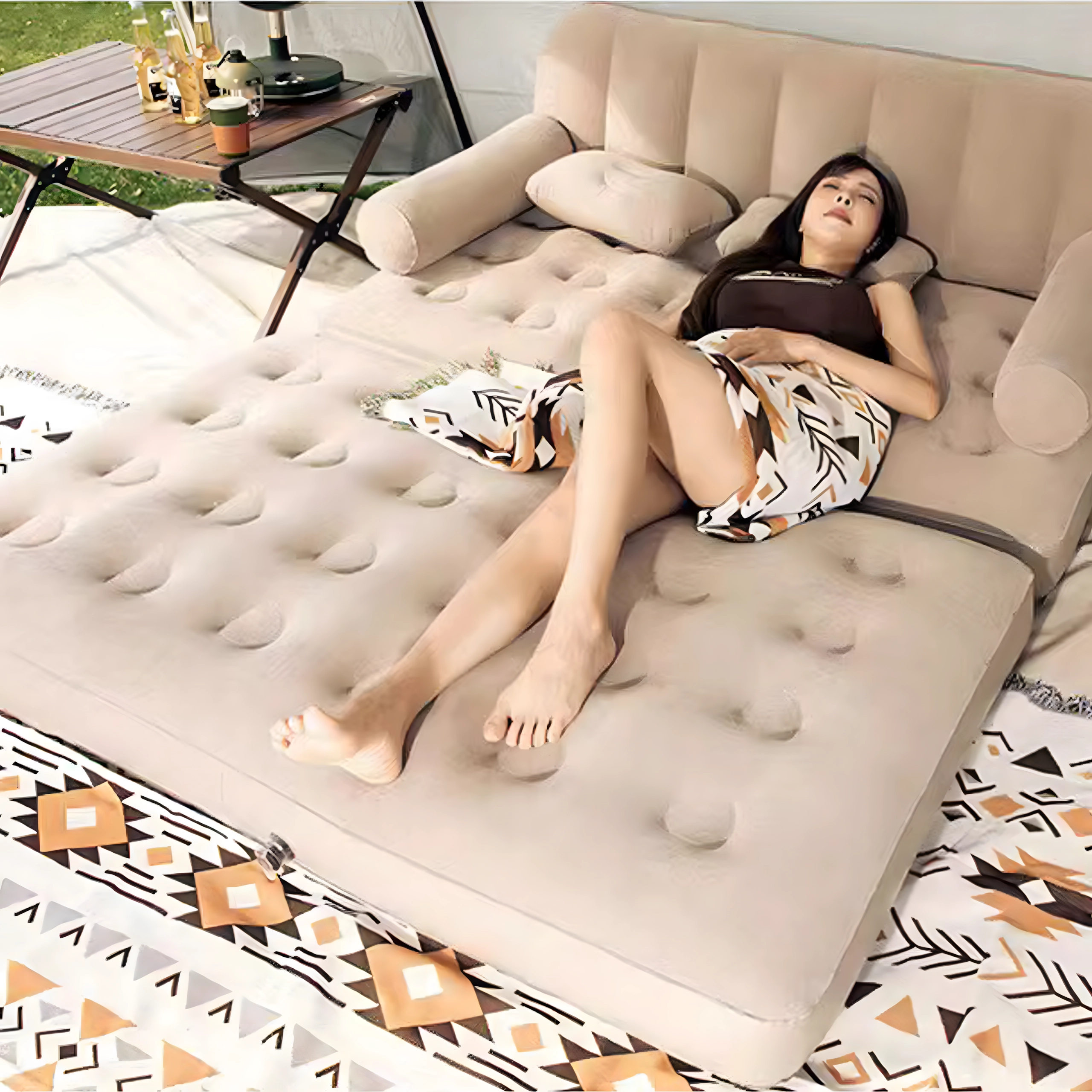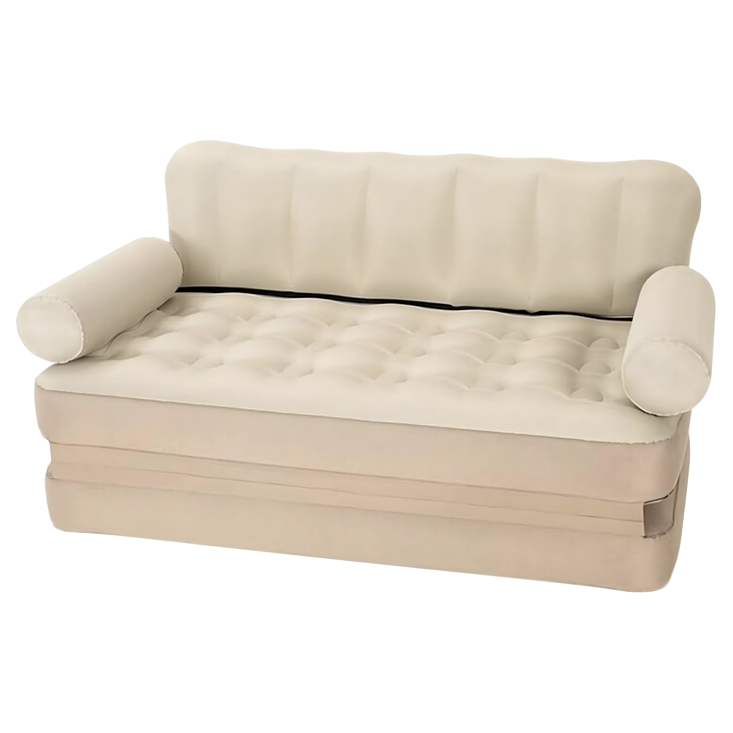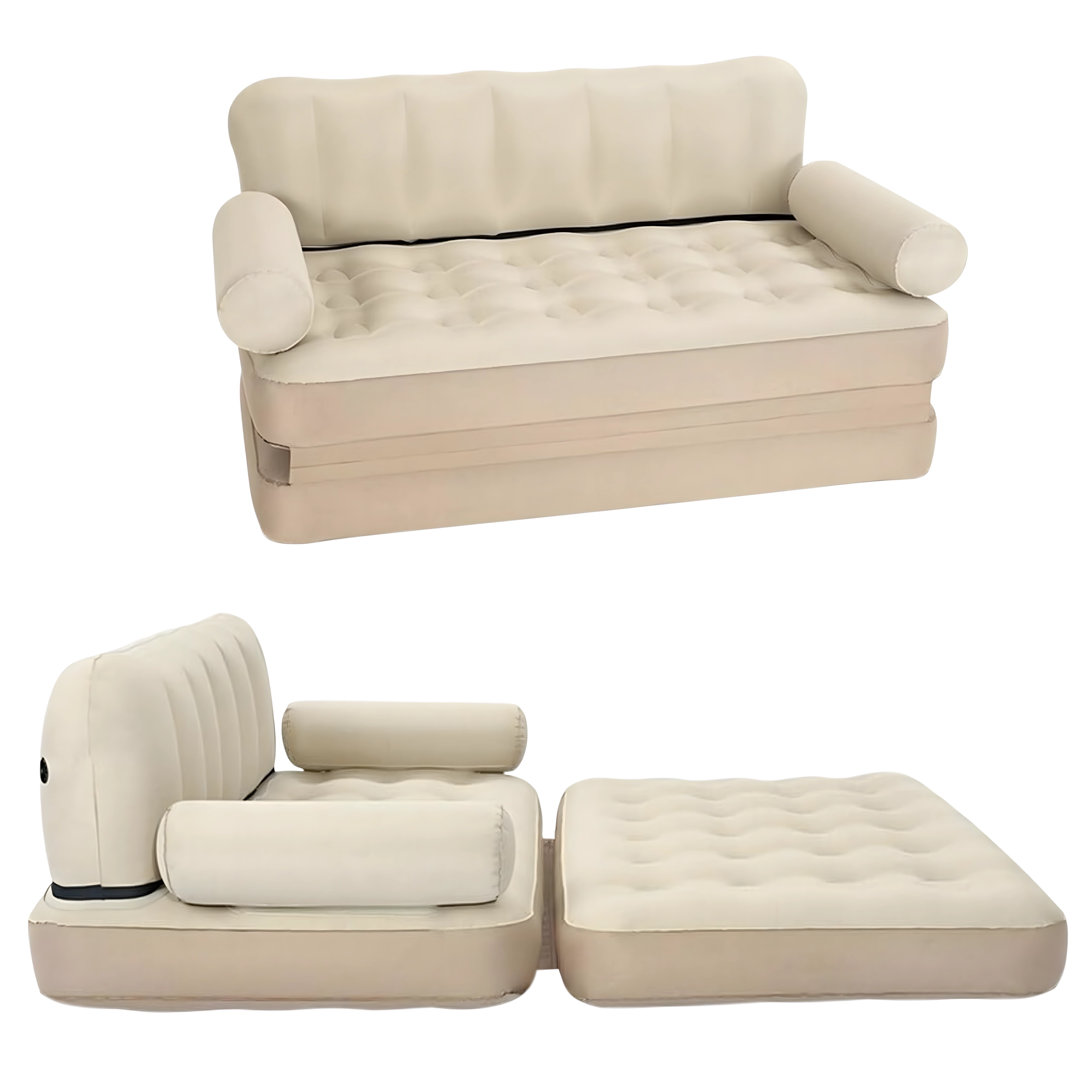 Odkrijte fleksibilno rešitev sedenja in spanja v enem. Ta napihljiva raztegljiva sofa 5-v-1 se v trenutku spremeni iz udobnega kavča v prostorno ležišče za dve osebi. Mehak, komorni zgornji sloj zmanjšuje točke pritiska in nudi oporo pri sedenju in spanju.