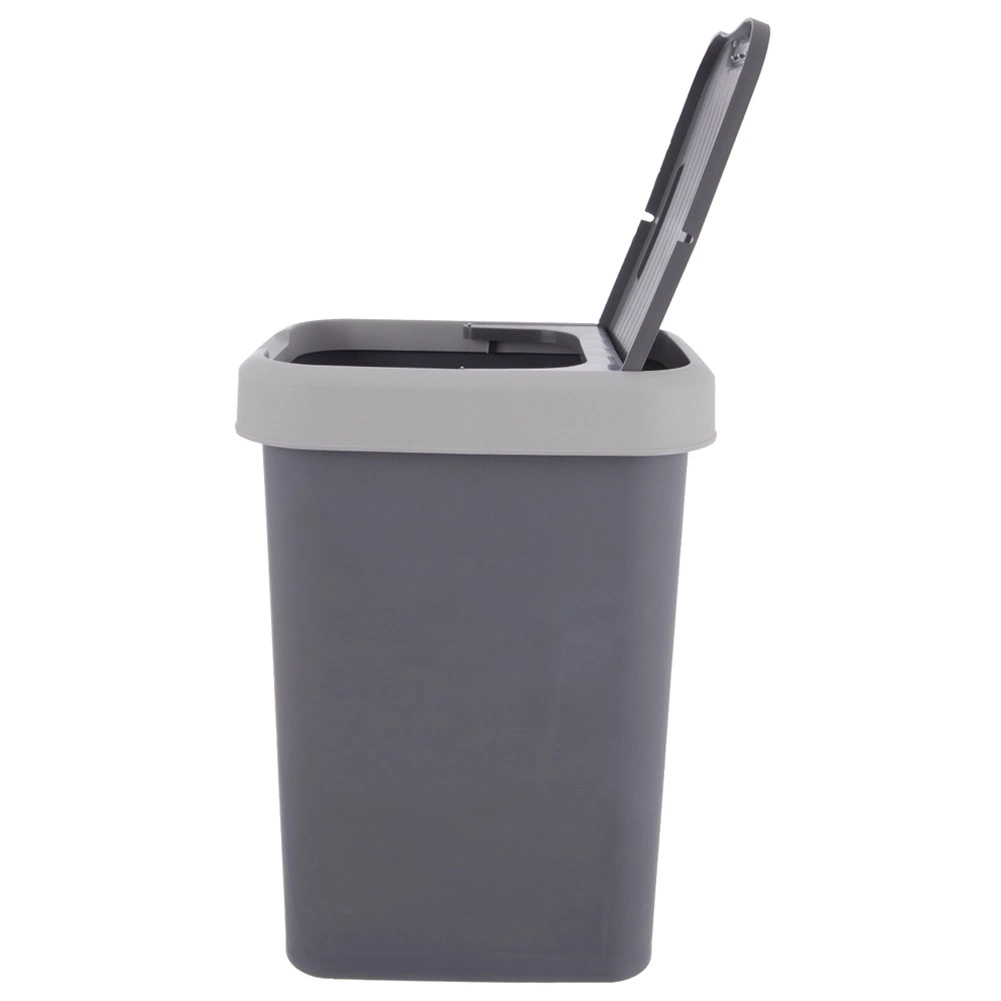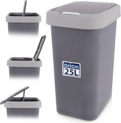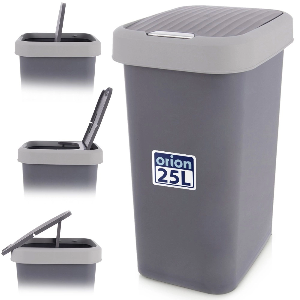 Koš za smeti s prostornino 25 l je odlična izbira za gospodinjstva in pisarne. Čvrsta plastična izvedba v dveh odtenkih sive deluje moderno in se enostavno čisti. Nihajni pokrov učinkovito omejuje širjenje vonjav, široka odprtina pa olajša odlaganje odpadkov in menjavo vrečk.