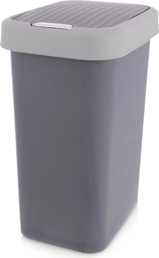 Praktičen plastičen koš za smeti s prostornino 25 l v elegantni sivi barvi z nihajnim pokrovom za enostavno in higiensko odlaganje odpadkov. Zaradi kompaktnih mer je primeren za kuhinjo, kopalnico in pisarno. Odporna in lahka zasnova, dvosmerno odpiranje pokrova ter možnost zadržanja v odprtem položaju zagotavljajo udobno vsakodnevno uporabo.