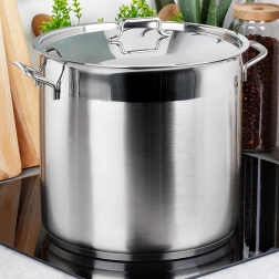 Velikokapacitetni nerjavni lonec ANETT s prostornino 18 l in trdnim pokrovom je idealen za kuhanje juh, osnov in dušenje velikih porcij. Zahvaljujoč kakovostnemu jeklu 18/10, večplastnemu akutermičnemu dnu in združljivosti z vsemi vrstami štedilnikov, vključno z indukcijo zagotavlja hitro in enakomerno porazdelitev toplote. Robustne stene, udobni ročaji in enostavno vzdrževanje v pomivalnem stroju ga naredijo za zanesljivega pomočnika v domači in profesionalni kuhinji.