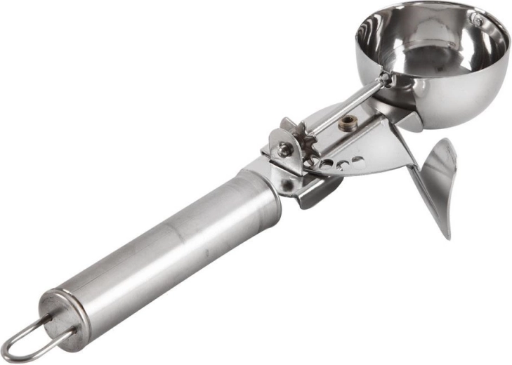 Praktična zajemalka za sladoled dolžine 22 cm in premera 5 cm za enostavno porcioniranje. Izdelana iz kakovostnega nerjavnega jekla, z ergonomsko ročajem in možnostjo obešanja. Idealna za ustvarjanje enakomernih kroglic sladoleda, pa tudi za porcioniranje pireja in riža.
