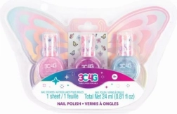 Doživite kreativnost in zabavo s kompletom lakov za nohte Metulj, ki vsebuje 3 barvne lake s nalepkami za deklice od 8. leta.