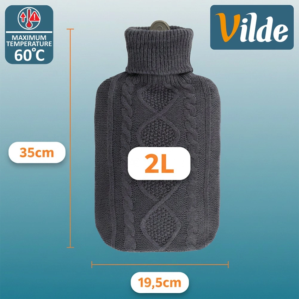Nežen, pleten prevlek s klasičnim zimskim vzorcem poveča udobje, preprečuje neposreden stik kože z vročo površino in ga je mogoče zlahka snesti in oprati. Odporno gumijasto telo ohranja lastnosti tudi pri dolgotrajni uporabi, medtem ko močan, tesnilni pokrov zagotavlja varno uporabo brez iztekanja vode.
