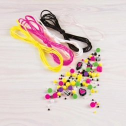 S tem ustvarjalnim kompletom si lahko otroci izdelajo svoje zapestnice, kar spodbuja njihovo ustvarjalnost in fine motorične sposobnosti. Vsebuje elastično vrvico, barvne vrvice, kroglice in obeske, idealno za vsakega malega umetnika.