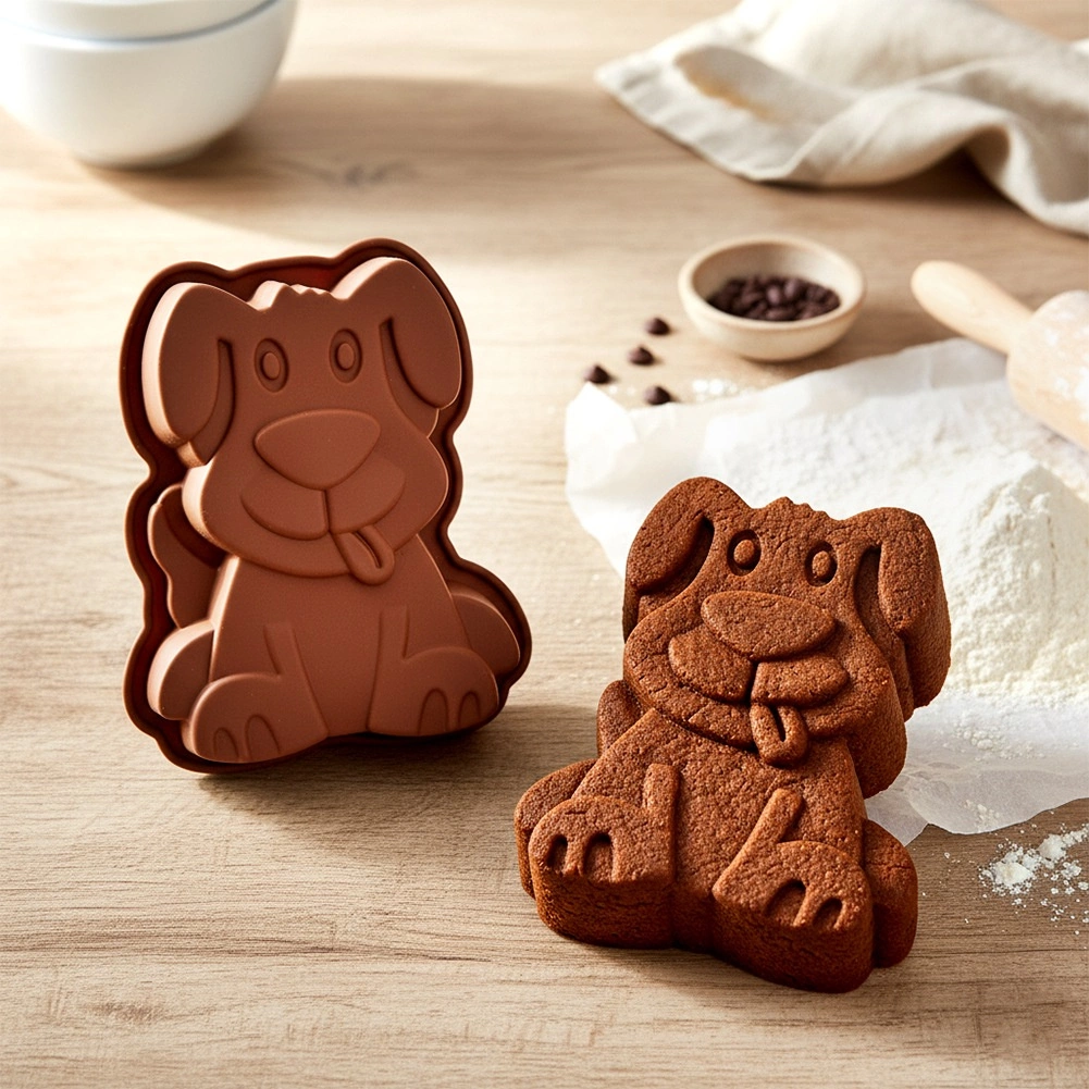 Ljubek silikonski pekač v obliki psa za preprosto peko in pripravo hladnih sladic. Zahvaljujoč prožnemu materialu se sladice ne prijemajo, zlahka se odstranijo iz modela in detajli tačk ter smrčka ustvarijo učinkovit videz vsake torte. Odpornost od -40 °C do +220 °C, primeren za pečico, mikrovalovko, zamrzovalnik in pomivalni stroj.