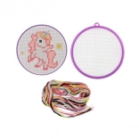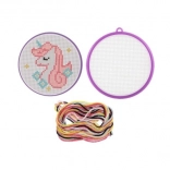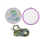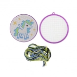 Odkrijte čar ročnih del s tem kompletom za vezenje s križnim vbodom z motivom samoroga. Idealen za začetnike in otroke od 6 let – vsebuje vse potrebno: okvirček, predlogo, iglo in 6 barvnih bombažnih prej za lahek in zabaven začetek vezenja.