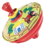 Ta tradicionalna glasbena vrtavka z motivom kmečkega dvorišča je idealna igrača za najmlajše. Preprost mehanizem s pritiskom na ročico zavrti vrtavko, ki med vrtenjem poskrbi za značilen zvok in vizualne dražljaje.