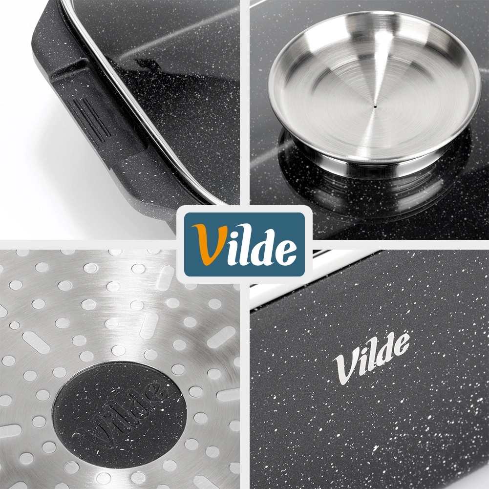 Preprosto vzdrževanje in dolga življenjska doba: kakovostna površina zmanjšuje prijemanje, celoten set pa je mogoče pomivati v pomivalnem stroju. Originalen izdelek znamke VILDE iz linije GRANITICA LINE, izdelan po evropskih standardih.