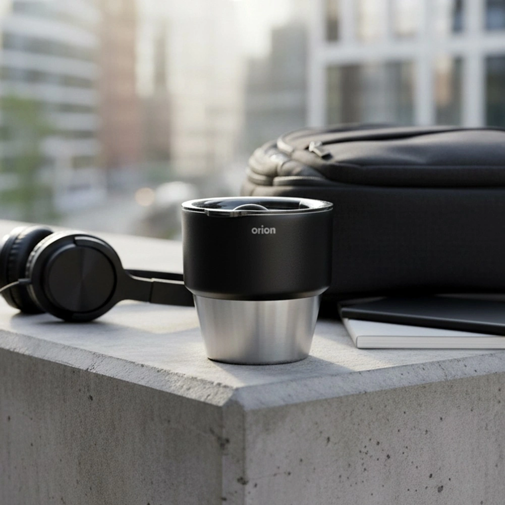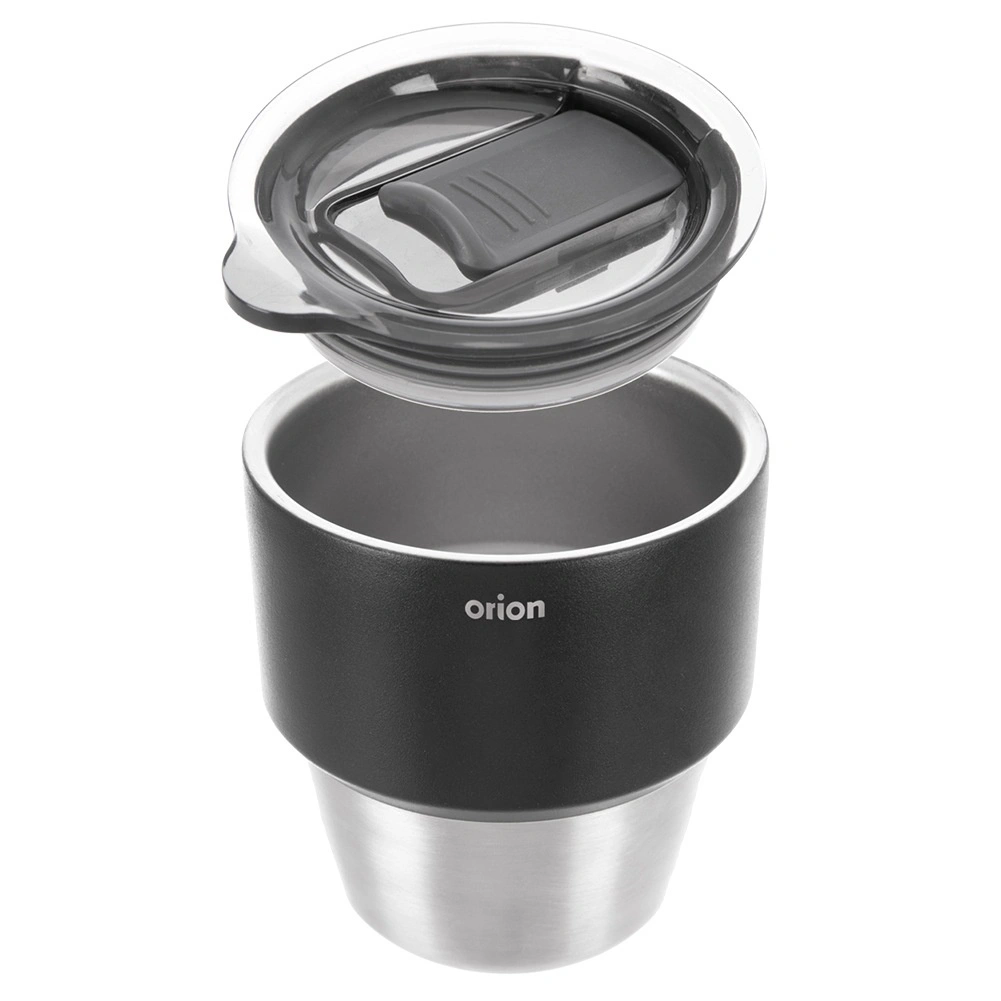Kompakten termo lonček 220 ml za kavo in čaj na poti ohranja pijačo dlje toplo ali hladno zahvaljujoč dvojni steni z vakuumsko izolacijo. Notranjost iz nerjavnega jekla, praktičen drsni pokrov in oblika, ki se prilega držalom v avtomobilu. Originalen izdelek znamke ORION za vsakodnevno uporabo.