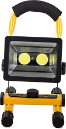 Udobno prenašanje omogočata mehak oblazinjen ročaj in stabilno stojalo z možnostjo vrtenja za 360° ter nastavitve kota. Reflektor ponuja 3 načine svetenja (1 COB, 2 COB, stroboskop) in dolgo življenjsko dobo LED do 50.000 ur.