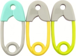 Ropotalo v obliki varnostne zaponke podpira razvoj koordinacije roka–oko, pomaga pri urjenju prijema ter prinaša veselje ob odkrivanju kontrastnih barv in oblik. Odlično doma in na poti.