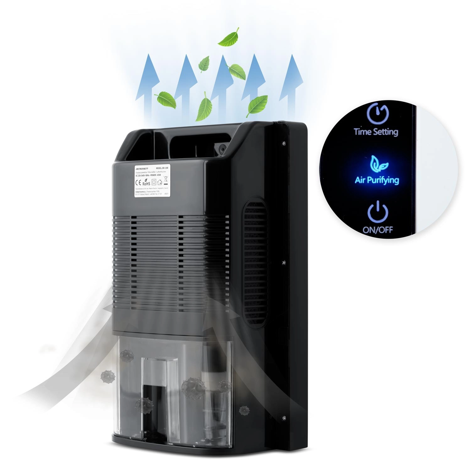 Kompakten razvlaževalnik zraka Berdsen BR-20 s Peltierjevo tehnologijo učinkovito zmanjšuje vlago in hkrati ponuja funkcijo čiščenja zraka z UV-svetlobo. Zaradi tihega delovanja, energetske učinkovitosti in zaslona na dotik z LED-prikazom je idealen za stanovanja in manjše prostore. Opremljen je z 2-litrskim rezervoarjem, časovnikom 1–24 h in samodejnim izklopom ob polnem rezervoarju.