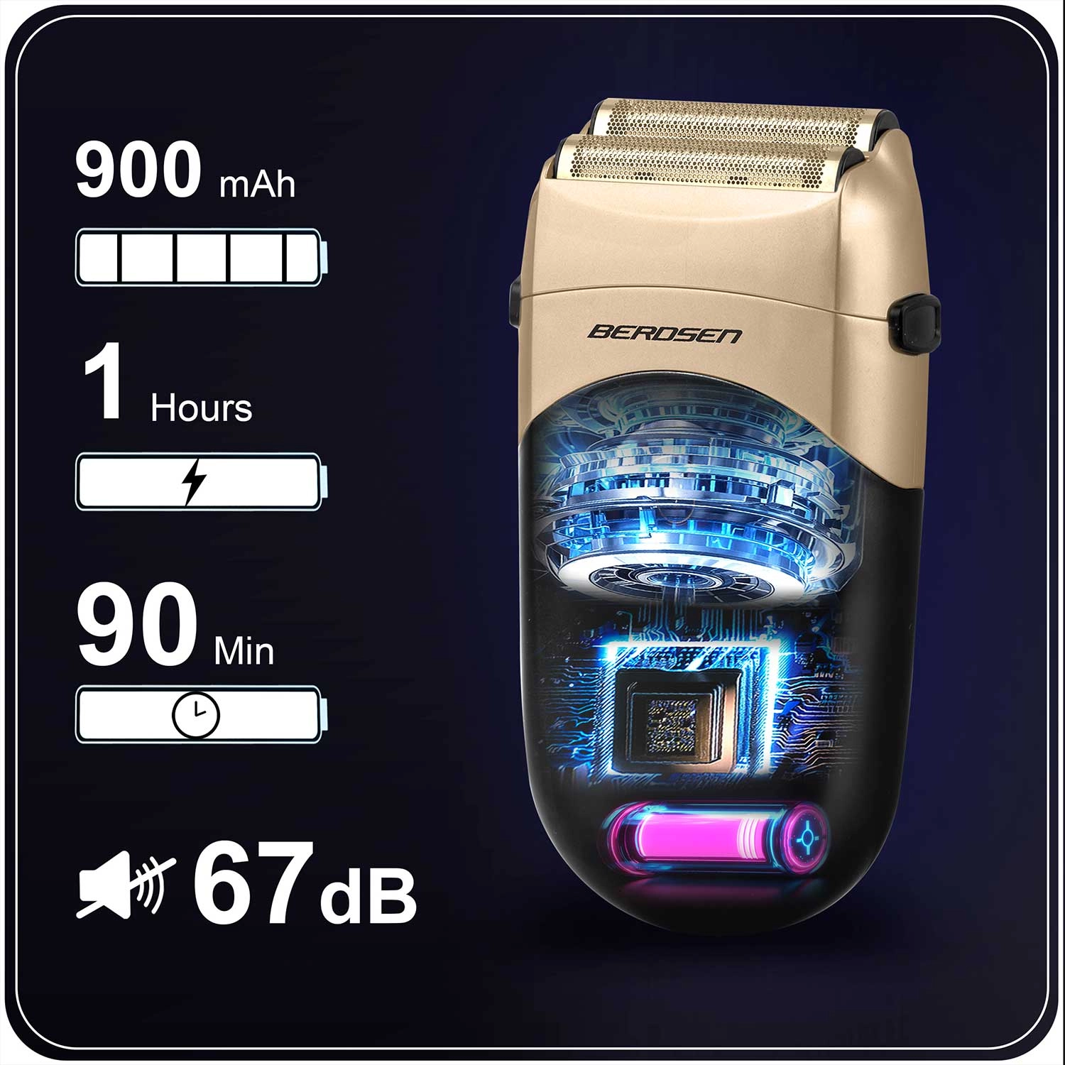 Motor s 6500–7000 RPM in pregleden LCD kazalnik stanja baterije ter vrtljajev za popoln nadzor nad britjem.