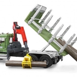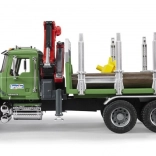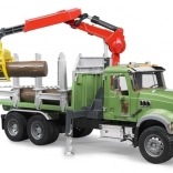 Robusten model tovornega vozila BRUDER MACK GRANITE je idealen za realistično igro sečnje in prevoza lesa. Prosojna vetrobranska šipa iz nelomljivega polikarbonata, odpirajoča se kabina in pokrov motorja z vpogledom na motor dajejo modelu avtentičen videz. Stabilnost pri nakladanju zagotavljajo izvlečne oporne noge, vrtljivi žerjav s prijemalom pa je enostaven za upravljanje.