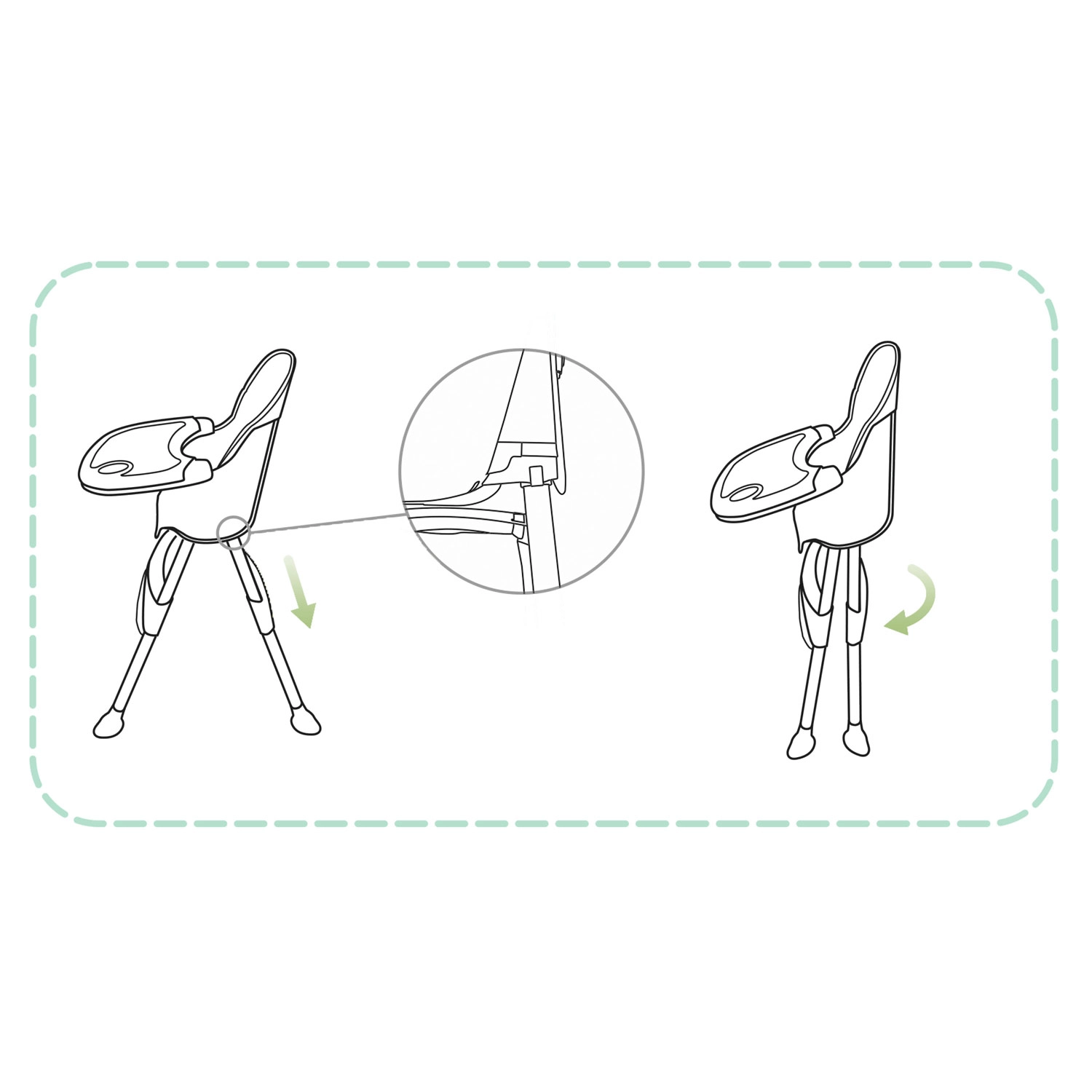 Visok stolček za hranjenje, nizek sedež in booster – z enim klikom spremenite konfiguracijo glede na starost in potrebe otroka.