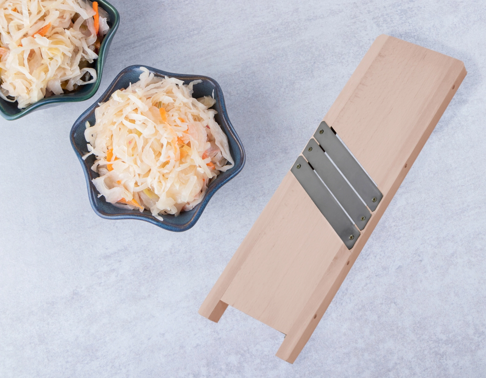 Ta lesena strgala/mandolina s tremi ostrimi nerjavnimi noži je idealna za pripravo domačega kislega zelja, solat in finih rezin zelenjave. Zaradi poševno nameščenih rezil surovine reže enakomerno in z minimalnim naporom. Kompaktne mere 44 × 15 cm olajšajo rokovanje in shranjevanje.