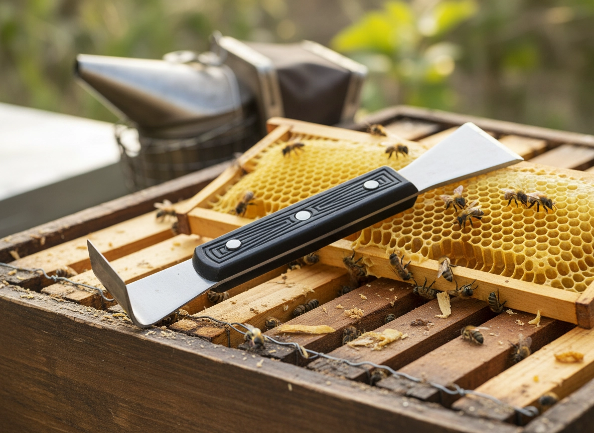 Posebej oblikovana kljuka olajša odpiranje zlepljenih satnikov, medtem ko drugi konec učinkovito postrga vosek in propolis s površin panja.