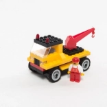 Zgradite rumeno delovno vozilo s krakom in figurico gradbinca – idealno za prizore z gradbišča in razvoj domišljije.