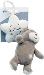 Ta prisrčna viseča igrača združuje medvedka s kremno zvezdico, v kateri je skrit glasbeni mehanizem. Po navijanju medvedka zazveni prijetna zibanka, ki dojenčka umiri in podpira mirno uspavanje doma in na poti.