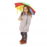 Brez hitenja pred ploho – otroški dežnik z motivom KRTEK je praktičen, lahek in varen za vsakodnevno nošenje. Barviti paneli z veselimi ilustracijami pritegnejo na prvi pogled, rumeni ukrivljeni ročaj pa lepo sede v drobne roke.
