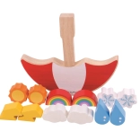 Zabavna lesena balansirna igra v obliki dežnika, ki uri koordinacijo oko–roka, fino motoriko in potrpežljivost. Otroci in odrasli nalagajo na zibajoči se dežnik barvne vremenske koščke – sonce, oblak, mavrico, snežinko, kapljo dežja in strelo – ter jih skušajo uravnotežiti brez prevrnitve. Kakovostna lesena izvedba, varna in trpežna, idealna za skupno družinsko zabavo.
