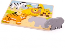 Izdelano iz kakovostnega, odgovorno pridobljenega lesa in zasnovano tako, da izpolnjuje aktualne evropske varnostne standarde. Puzzle vsebuje 5 velikih koščkov s safari motivi, ki otrokom prinašajo veselje ob odkrivanju in učenju.