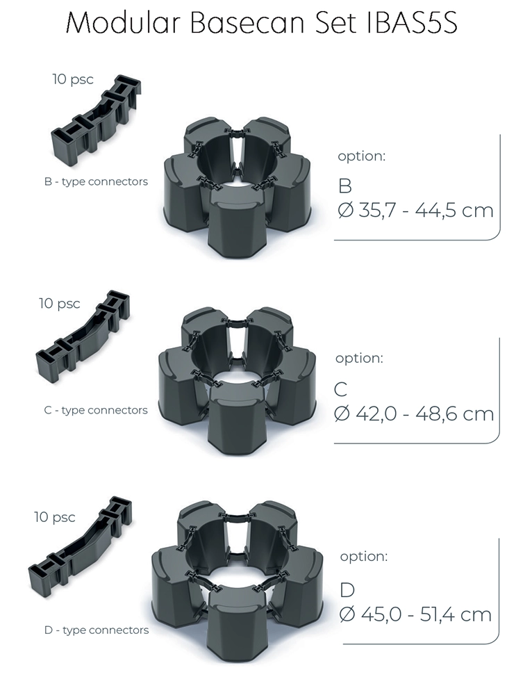 - Ø 35,7–44,5 cm – 5 modulov + 10 spojk »B«