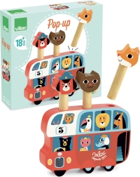 Vilac Lesena izstrelitvena igra Avtobus z živalmi je čudovita igrača z ilustracijami znane umetnice Ingele P. Arrhenius. Tri ljubke figurice – lisica, kuža in mačka – izskočijo iz avtobusa, kar zagotovo zabava otroke.