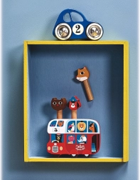 Lesena izstrelitvena igra Avtobus z živalmi je zasnovana s strani umetnice Ingela P. Arrhenius, ki je poznana po svojem strastnem pristopu k retro stilu. Ta igrača je ekološko izdelana s poudarkom na varstvu okolja. Avtobus vsebuje figure različnih živali, ki jih otroci zlahka upravljajo in izstrelijo. Igrača spodbuja motoriko in domišljijo otrok.