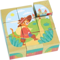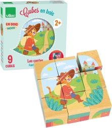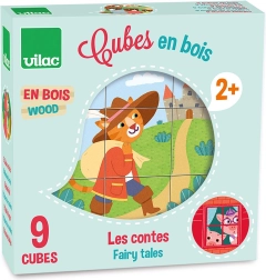 Lesene kocke Vilac Zgodbe otrokom prinašajo veselje do odkrivanja in sestavljanja. Iz devetih trdnih kock lahko sestavite šest različnih pravljičnih motivov, ki razvijajo domišljijo in učijo otroke osredotočanja. Zahvaljujoč trdnemu lesu in kakovostnemu tisku je igrača trpežna in primerna za vsakodnevno igro.