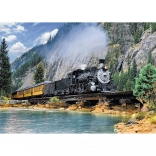 Sestavljanka prikazuje zgodovinsko lokomotivo v čudoviti gorski pokrajini. Očarljiva podoba je idealna za ljubitelje vlakov in krajinskih scen.